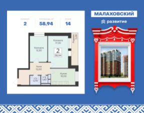 Продается 2-к квартира площадью 58.94 кв. м с черновой отделкой. Квартира расположена на 14 этаже 17 этажного дома, в 203 корпусе.