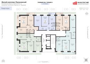 Планировки комплекса "Малаховский" функциональны и эргономичны, что упрощает зонирование и расстановку мебели. Квартиры оснащены гардеробными, лоджиями с панорамным остеклением, двумя санузлами (даже в однокомнатных) и просторными прихожими.