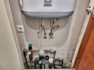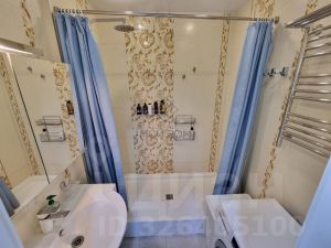 Санузел раздельный, отделан кафельной плиткой. В туалете — водонагреватель накопительного типа Electrolux. В ванной комнате есть стиральная машина и электрический полотенцесушитель.