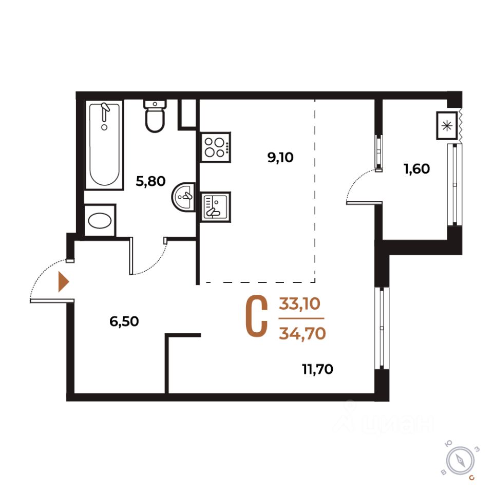 Продается студия от застройщика в ЖК бизнес-класса "Новое Летово". Общая площадь: 34.7 кв.м., жилая: 11.7 кв.м., площадь кухни: 9.1 кв.м. Этаж: 2, квартира 136.