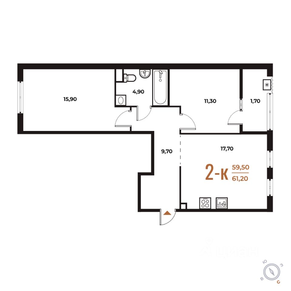 Продается 2-комн. квартира от застройщика в ЖК бизнес-класса "Новое Летово". Общая площадь: 61.2 кв.м., жилая: 27.2 кв.м., площадь кухни: 17.7 кв.м. Этаж: 2, квартира 244.
