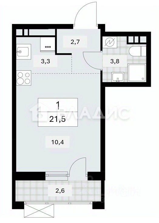 • Кухня 3.3 м²