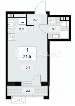 • Жилая площадь 10.4 м²