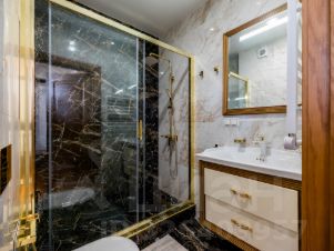 Квартира с дизайнерским ремонтом из натуральных материалов: мрамор, широкоформатный керамогранит, массив дерева, шпон, дубовый паркет. Интерьер выполнен в единой стильной концепции.