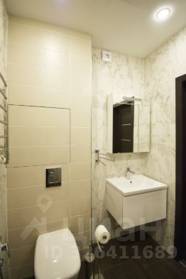 В санузле - тропический душ, гигиенический душ, подвесной безободковый фаянс, подвесная раковина и зеркальные шкафы. Электрический теплый пол. Установлена стиральная машинка и бойлер. Подключена дополнительная точка вентиляции и система AquaStop с датчиками.