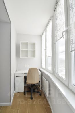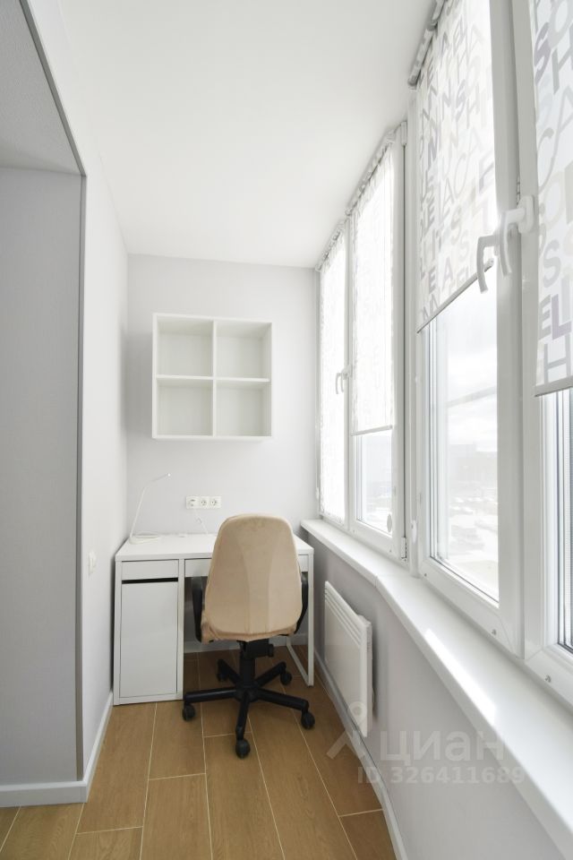 На лоджии - теплое остекление, электрический теплый пол, утепленные стены и потолок, дополнительные электроконвекторы с термостатом. Комфортное рабочее место с компьютерным креслом, рулонные шторы.