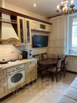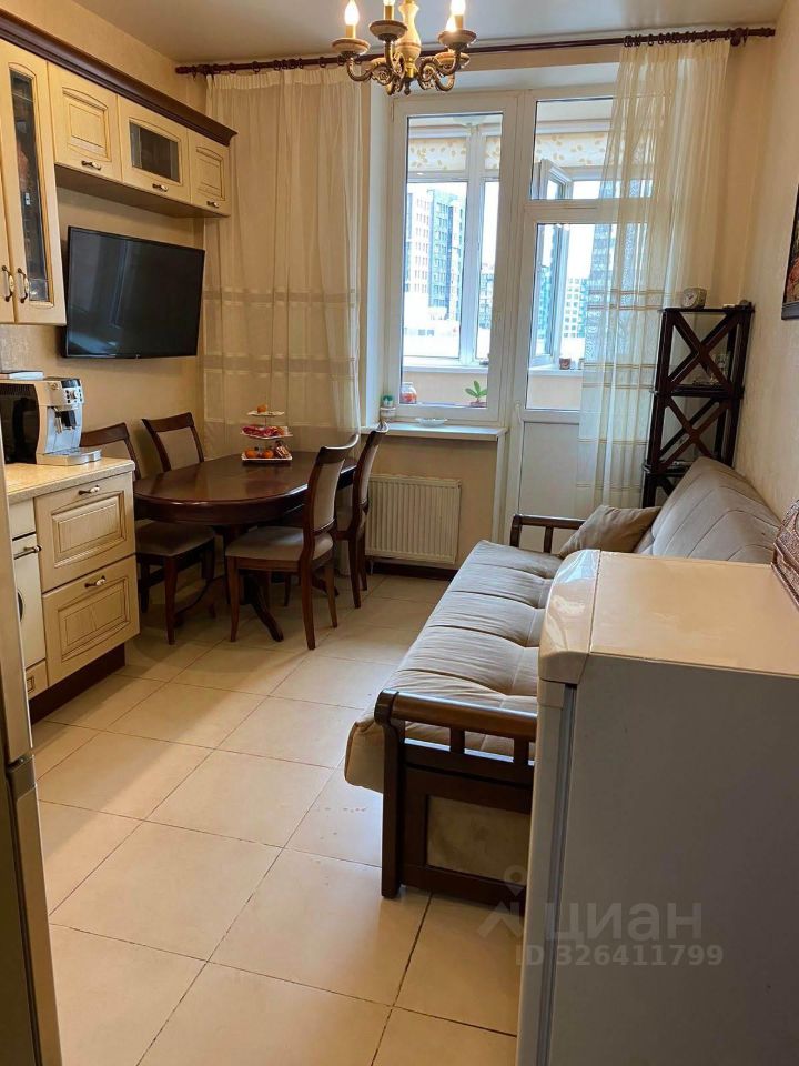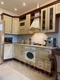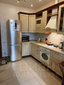 В квартире современный ремонт: натяжные потолки, качественные двери, на полу плитка и ламинат, полы теплые. На кухне дорогой кухонный гарнитур с техникой ( посудомоечная машина, вытяжка и духовой шкаф).