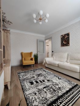 В квартире выполнен ремонт в светлых тонах. Остается с мебель и крупная бытовая техника, таким образом, вы получаете полностью готовую квартиру для переезда или сдачи в аренду. Комнаты в квартире изолированные, с отдельной спальней и гостиной. Имеется балкон с выходом через кухню. Балкон отделан с утеплением до -5 градусов. Организовано много мест хранения (вместительный шкаф-купе и шкаф для верхней одежды в прихожей, шкаф в спальне, а также в гостиной). В спальне установлена двуспальная кровать с подъемным механизмом. В гостиной имеется раскладной диван (Икеа, кожаный), а также установлен мощный кондиционер. На кухне установлен гарнитур со встроенными газовыми плитой и духовкой, а также отдельно стоящий холодильник.