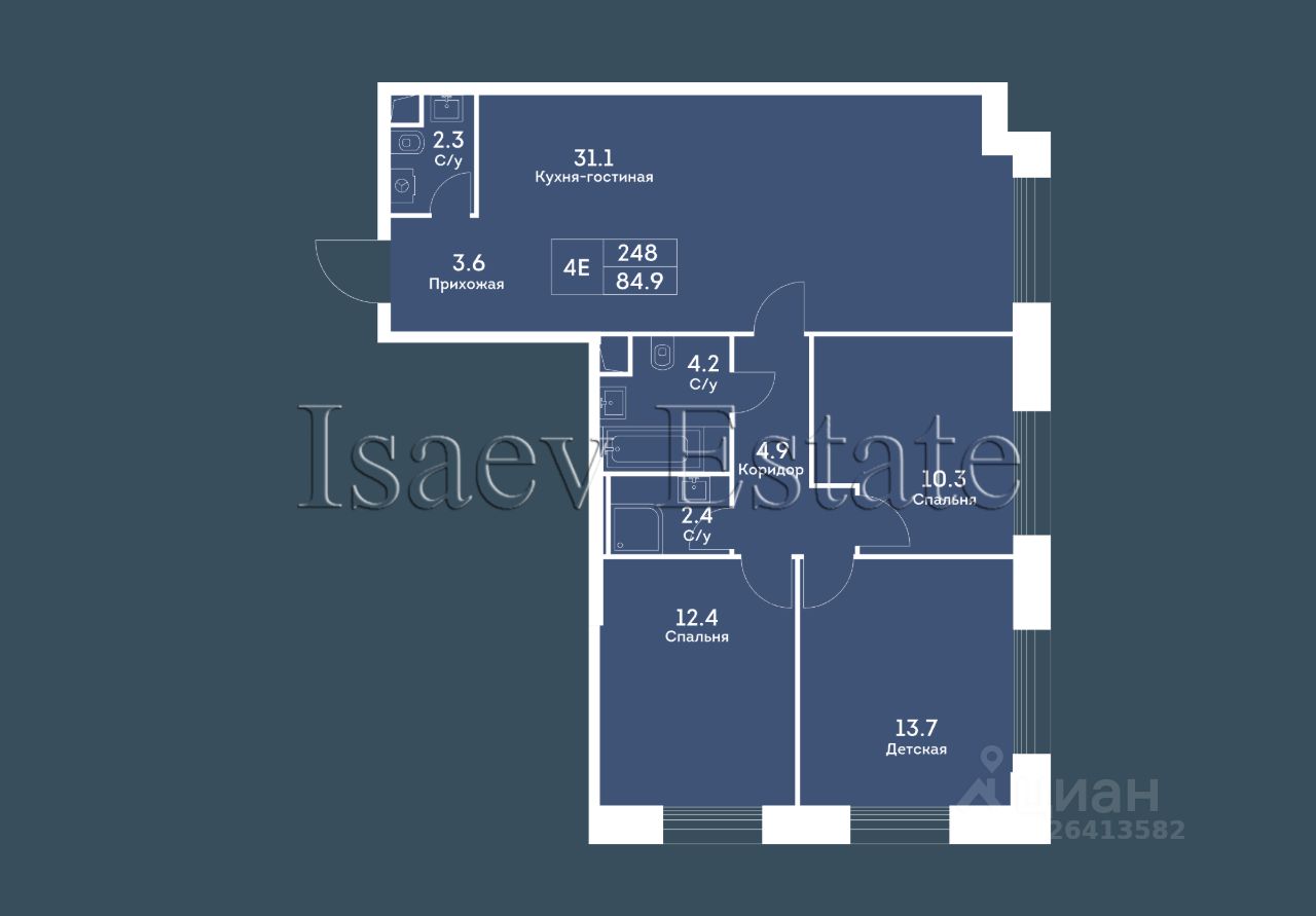 КВАРТИРА: Просторная светлая квартира. Свободная планировка. Есть возможность организовать три изолированные спальни. Две ванные комнаты, гардеробная. Одну комнату можно предусмотреть как мастер-спальня. Отличный этаж и вид из окон. Все окна во двор.