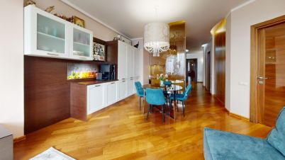 Вашему вниманию предлагается очень уютная, видовая пятикомнатная квартира в жилом комплексе Авеню 77, расположенном в 5-7 в минутах неспешной ходьбы как от метро Чертановская, так и от Битцевского лесопарка. Общая площадь квартиры 135 кв.м. Выполнен отличный ремонт. В результате элегантного решения архитектора, получилось создать комфортные условия для проживания большой семьи. Три изолированные спальни по 8 кв.м. объединены в единую детскую зону светлой игровой комнатой 15 кв.м. Еще одна спальня 13,6 кв.м. отделена от детской части местами общего пользования состоящих из двух полноценных санузлов, туалетной комнаты, кладовой, постирочной, укомплектованной вместительными стеллажами, стиральной и сушильной машинами и вместительной гардеробной 9,8 кв.м. В этой части квартиры расположена большая и уютная кухня-гостиная 30,3 кв.м. Продуманная до мелочей кухня оборудована техникой от известных производителей. На полу паркет из ценных пород дерева. Основная часть мебели изготовлена на заказ в Италии. Установлен бойлер на 100 литров и система кондиционирования воздуха. Из окон открываются отличные виды на город и лес, фотографии в объявлении сняты из гостиной и игровой. Соседи по этажу солидные, состоятельные семьи, все закончили ремонты и проживают. Три грузовых, скоростных лифта. Жилой комплекс благоустроен и полностью заселён. На ухоженной территории комплекса есть все для комфортного проживания: подземный паркинг, гостевая парковка, стоматология, кафе-кондитерская, салон красоты, химчистка, зал единоборств, тренажерный зал, детская площадка, частный детский сад, и конечно круглосуточная, двухуровневая охрана и видеонаблюдение. За территорией, в пешей доступности, огромное количество объектов городской инфраструктуры: практически любые магазины, рынок выходного дня, 2 школы, 4 детских сада, взрослая и детская поликлиники, конноспортивный комплекс, два бассейна, спортивный комплекс Чертаново и т.д. и т.п. Свободна.