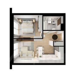 В корпусе 1.4 появится общественная терраса на 30-м этаже. Доступ сюда есть только у жителей, поэтому вы не встретите в этом пространстве посторонних людей. Здесь можно заниматься спортом, отдохнуть за чтением книги или создать собственный сад. А ещё отсюда открываются красивые виды на город.