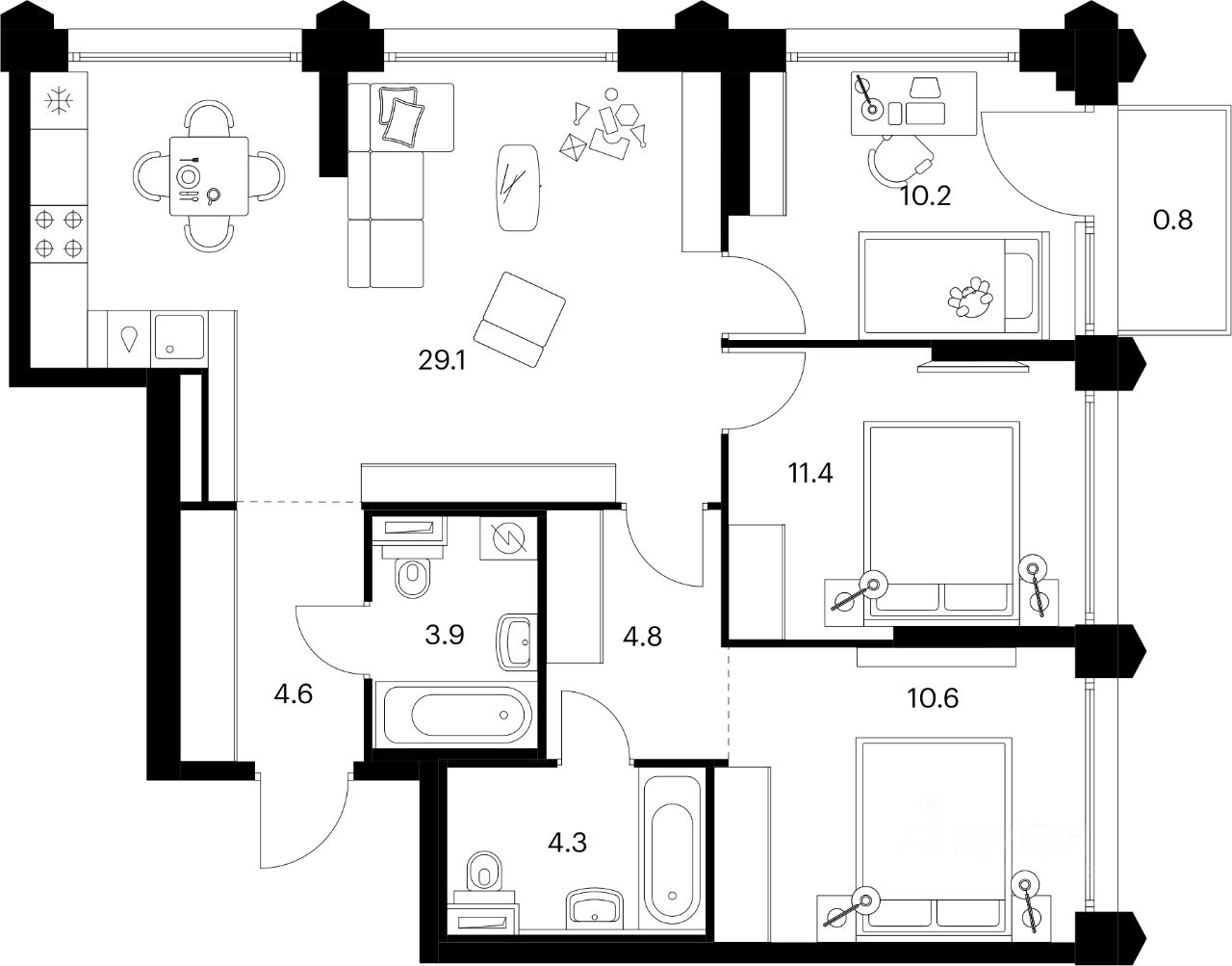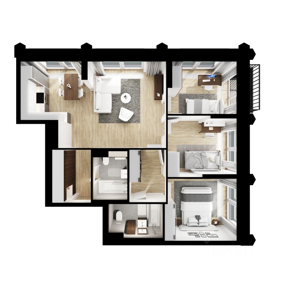 В "Бусиновском парке" предусмотрены квартиры с панорамным остеклением, различными балконами, эркерами, угловыми окнами и большим количеством окон — до пяти в одной комнате. В таких квартирах широкий угол обзора: можно пить кофе, наблюдая за жизнью на улице и наслаждаясь ощущением простора. Ещё больше комфорта придаст мягкий солнечный свет, который равномерно осветит всю квартиру. Артикул 954170 (Заст