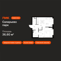 Продаётся 1-комн. квартира площадью 36,6 кв.м на 15 этаже 24 этажного дома (Корпус 82.4, Секция 4) проекта ПИК Саларьево парк. Светлый просторный подъезд на уровне земли, функциональная планировка, большие окна, предчистовая отделка.