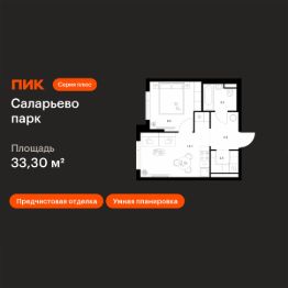 Продаётся 1-комн. квартира площадью 33,3 кв.м на 10 этаже 24 этажного дома (Корпус 82.4, Секция 4) проекта ПИК Саларьево парк. Светлый просторный подъезд на уровне земли, функциональная планировка, большие окна, предчистовая отделка.