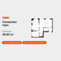 Продаётся 2-комн. квартира площадью 58,8 кв.м на 5 этаже 15 этажного дома (Корпус 57.2, Секция 2) проекта ПИК Саларьево парк. Светлый просторный подъезд на уровне земли, функциональная планировка, большие окна, предчистовая отделка.
