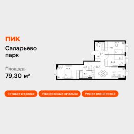 Продаётся 3-комн. квартира площадью 79,3 кв.м на 7 этаже 14 этажного дома (Корпус 69.2, Секция 2) проекта ПИК Саларьево парк. Светлый просторный подъезд на уровне земли, функциональная планировка, большие окна, c отделкой.