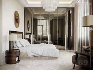 Натуральный паркет, шоколадного цвета, высокие двери, гипсовая лепнина. Сантехника премиальных брендов.