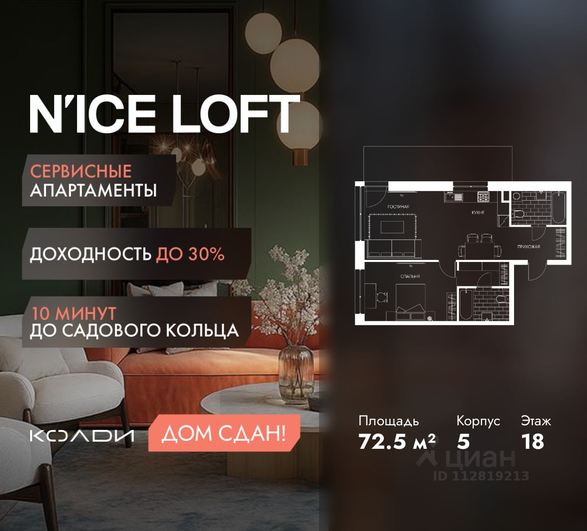 NICE LOFT — готовый жилой квартал с собственным спортивным кластером в 10 минутах от Садового кольца Комплекс апартаментов бизнес-класса NICE LOFT, девелопером которого выступила компания Coldy, представляет собой знаковое жилое пространство, на территории которого органично объединены высококачественная инфраструктура для комфортной жизни и полноценный спортивный кластер. NICE LOFT — новая спортивная доминанта Москвы, где для жителей и их гостей предусмотрено более 20 000 м², созданных специально для тренировок, игр, восстановления и оздоровления. Автором выразительной городской эстетики выступило архитектурное бюро APEX. Строгие силуэты фасадов эффектно возвышаются над благоустроенным окружением, а световые блики элегантно подчеркивают структурное фасадное остекление. Сердце проекта — физкультурно-оздоровительный комплекс с двумя ледовыми аренами формата НХЛ — профессиональными площадками. Помимо спортивных арен на территории NICE LOFT предусмотрено пять многофункциональных залов, где каждый, сможет реализовать свой спортивный потенциал. Для тех, кто предпочитает тренировки и прогулки на свежем воздухе, создан спортивный парк общей площадью 6 300 м² с воркаут-зонами, игровыми площадками и уединенными пространствами для отдыха. Также внутри квартала проложена километровая беговая дорожка, которая доступна к использованию в любое время года. Особое внимание архитекторы уделили входной группе — просторное авторское лобби с потолками до 9 метров с использованием природных элементов. Резиденты и их гости смогут насладиться садом, не покидая пределы дома. Территория апарт-комплекса NICE LOFT соответствует современным стандартам безопасности: инновационная система видеонаблюдения, охраняемый подземный паркинг и круглосуточный консьерж-сервис. Преимущества NICE LOFT: Готовый жилой квартал с собственным спортивным кластером в 10 минутах от Садового кольца Современная архитектура с выразительными контрастными фасадами Спортивная инфраструктура 20 000 м²: 2 ледовые арены формата НХЛ, 5 залов, беговая дорожка 1 км Спортивный парк 6 300 м² с зонами для разных видов активностей Более 10 видов спорта в одном кластере Апартаменты с панорамными окнами и потолками до 5 метров Видовые лоты с террасами и патио Авторское лобби с потолками до 9 метров Консьерж-сервис 24/7 Охраняемый подземный паркинг