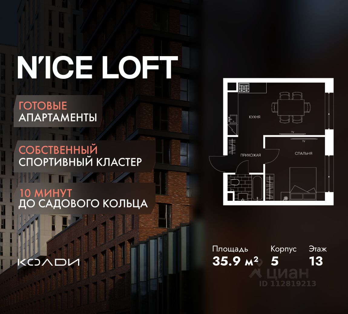 N'ICE LOFT — готовый комплекс апартаментов с собственным спортивным кластером в 10 минутах от Садового кольца. Комплекс апартаментов бизнес-класса N'ICE LOFT, девелопером которого выступила компания КОЛДИ, представляет собой знаковое жилое пространство, на территории которого органично объединены высококачественная инфраструктура для комфортной жизни и полноценный спортивный кластер. N'ICE LOFT — новая спортивная доминанта Москвы, где для жителей и их гостей предусмотрено более 20 000 м², созданных специально для тренировок, игр, восстановления и оздоровления. Автором выразительной городской эстетики выступило архитектурное бюро APEX. Строгие силуэты фасадов эффектно возвышаются над благоустроенным окружением, а световые блики элегантно подчеркивают структурное фасадное остекление. Сердце проекта — физкультурно-оздоровительный комплекс с двумя ледовыми аренами формата НХЛ — профессиональными площадками. Помимо спортивных арен на территории N'ICE LOFT предусмотрено пять многофункциональных залов, где каждый сможет реализовать свой спортивный потенциал. Для тех, кто предпочитает тренировки и прогулки на свежем воздухе, создан спортивный парк общей площадью 6 300 м² с воркаут-зонами, игровыми площадками и уединенными пространствами для отдыха. Также внутри квартала проложена километровая беговая дорожка, которая доступна к использованию в любое время года. Особое внимание архитекторы уделили входной группе — просторное авторское лобби с потолками до 9 метров с использованием природных элементов. Резиденты и их гости смогут насладиться садом, не покидая пределы дома. Территория апарт-комплекса N'ICE LOFT соответствует современным стандартам безопасности: инновационная система видеонаблюдения, охраняемый подземный паркинг и круглосуточный консьерж-сервис. Преимущества N'ICE LOFT: Готовый комплекс с собственным спортивным кластером в 10 минутах от Садового кольца Современная архитектура с выразительными контрастными фасадами Спортивная инфраструктура 20 000 м²: 2 ледовые арены формата НХЛ, 5 многофункциональных залов, беговая дорожка 1 км Спортивный парк 6 300 м² с зонами для разных видов активностей Более 10 видов спорта в одном кластере Апартаменты с панорамными окнами и потолками до 5 метров Видовые лоты с террасами и патио Авторское лобби с потолками до 9 метров Консьерж-сервис 24/7 Охраняемый подземный паркинг