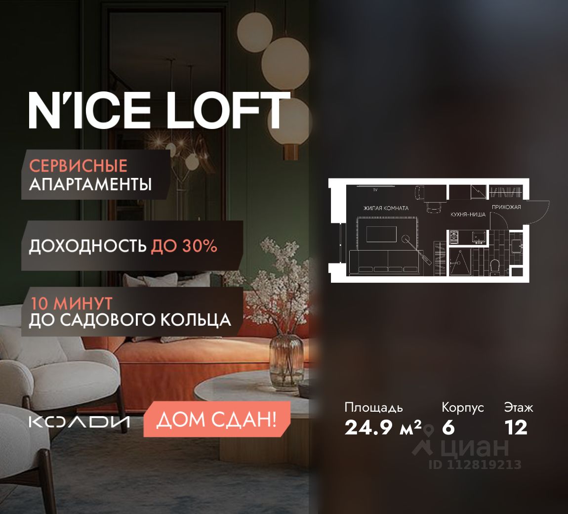 NICE LOFT — готовый жилой квартал с собственным спортивным кластером в 10 минутах от Садового кольца Комплекс апартаментов бизнес-класса NICE LOFT, девелопером которого выступила компания Coldy, представляет собой знаковое жилое пространство, на территории которого органично объединены высококачественная инфраструктура для комфортной жизни и полноценный спортивный кластер. NICE LOFT — новая спортивная доминанта Москвы, где для жителей и их гостей предусмотрено более 20 000 м², созданных специально для тренировок, игр, восстановления и оздоровления. Автором выразительной городской эстетики выступило архитектурное бюро APEX. Строгие силуэты фасадов эффектно возвышаются над благоустроенным окружением, а световые блики элегантно подчеркивают структурное фасадное остекление. Сердце проекта — физкультурно-оздоровительный комплекс с двумя ледовыми аренами формата НХЛ — профессиональными площадками. Помимо спортивных арен на территории NICE LOFT предусмотрено пять многофункциональных залов, где каждый, сможет реализовать свой спортивный потенциал. Для тех, кто предпочитает тренировки и прогулки на свежем воздухе, создан спортивный парк общей площадью 6 300 м² с воркаут-зонами, игровыми площадками и уединенными пространствами для отдыха. Также внутри квартала проложена километровая беговая дорожка, которая доступна к использованию в любое время года. Особое внимание архитекторы уделили входной группе — просторное авторское лобби с потолками до 9 метров с использованием природных элементов. Резиденты и их гости смогут насладиться садом, не покидая пределы дома. Территория апарт-комплекса NICE LOFT соответствует современным стандартам безопасности: инновационная система видеонаблюдения, охраняемый подземный паркинг и круглосуточный консьерж-сервис. Преимущества NICE LOFT: Готовый жилой квартал с собственным спортивным кластером в 10 минутах от Садового кольца Современная архитектура с выразительными контрастными фасадами Спортивная инфраструктура 20 000 м²: 2 ледовые арены формата НХЛ, 5 залов, беговая дорожка 1 км Спортивный парк 6 300 м² с зонами для разных видов активностей Более 10 видов спорта в одном кластере Апартаменты с панорамными окнами и потолками до 5 метров Видовые лоты с террасами и патио Авторское лобби с потолками до 9 метров Консьерж-сервис 24/7 Охраняемый подземный паркинг