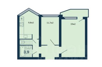 • 2 жилые изолированные комнаты 19 м2 и 12 м2;