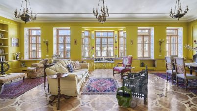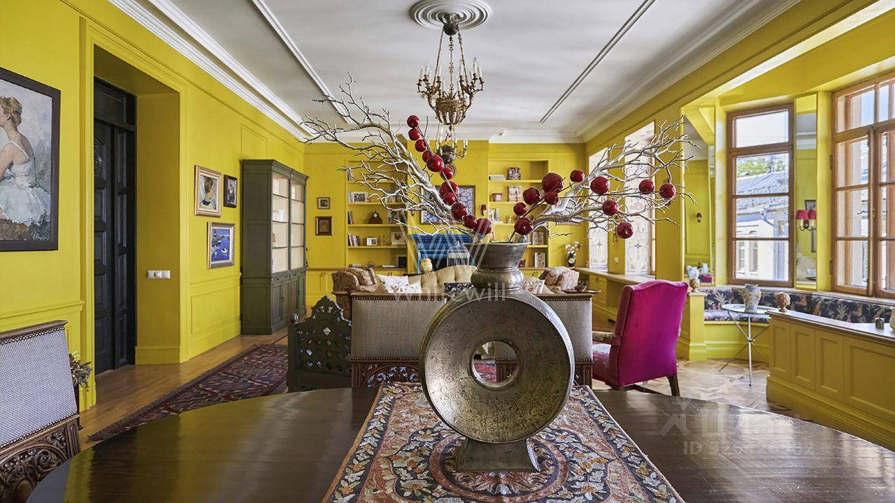 Интерьер оформлен в классическом стиле, квартира опубликована на обложке журнала AD и в альбоме "100 самых красивых комнат мира". Пентхаус расположен на 4 и 5 этажах. Квартира полностью укомплектована мебелью и техникой.