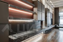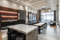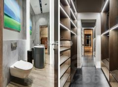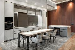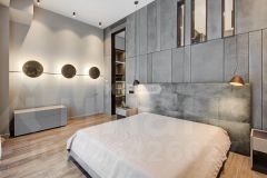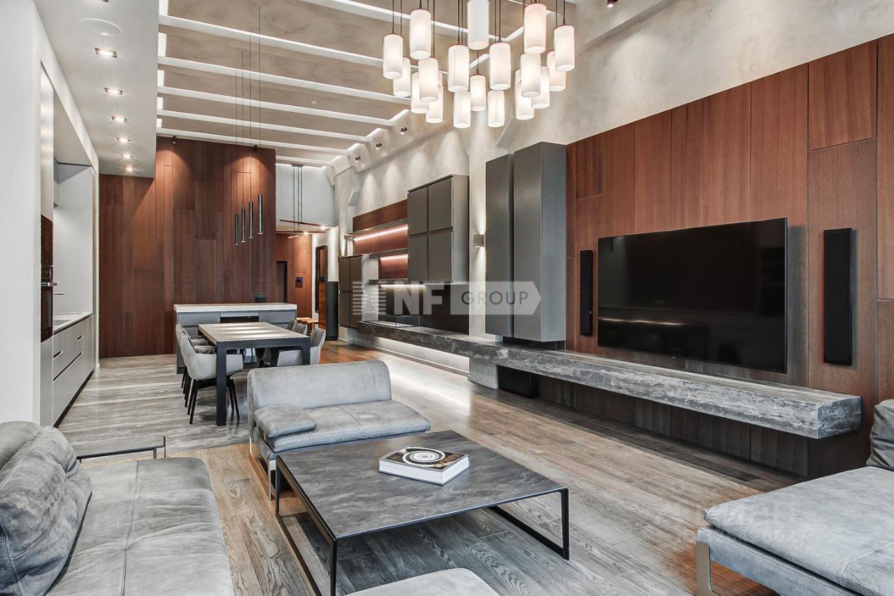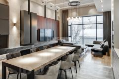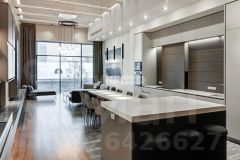 Выполнена отделка в современном стиле, кухня Modulnova оснащена функциональной бытовой техникой, диван Baxter, стулья Cattelan Italia, мебель в коридоре Riva1920, мебель в спальне Baxter.