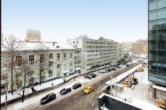 Окна с панорамным остеклением выходят на 2 стороны света: на тихую улицу Ямского поля и благоустроенный двор соседнего жилого комплекса SLAVA.