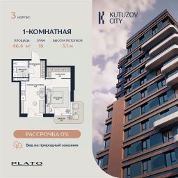 Продаётся светлая однокомнатная квартира площадью 46,4 м² в башне "Созидание" клубного дома "Кутузов Сити". Планировка квартиры продумана до мелочей и позволяет создать комфортное пространство для жизни. Просторная кухня-столовая с панорамными окнами объединяет обеденную зону, кухню и гостиную. Изолированная спальня обеспечивает уединённое пространство для отдыха. Для хранения вещей есть отдельная гардеробная, а также ниша в прихожей. Просторная ванная комната позволяет разместить как душевую кабину, так и большую ванную. Большие окна наполнят квартиру естественным светом и сделают интерьер стильным. Высокие потолки придают пространству ощущение свободы и лёгкости. Продуманная планировка позволяет эффективно использовать каждый квадратный метр. О проекте: "Кутузов Сити" — клубный дом на 220 квартир, разработанный совместно с бюро Atrium и Oleg Klodt Architecture & Design. Проект строится в престижном Западном административном округе Москвы, всего в нескольких минутах ходьбы от Кутузовского проспекта. Закрытая территория, приватный двор, подземный паркинг и стильные лобби создают атмосферу комфорта и безопасности. В двух шагах от дома находится крупнейшая природная территория Москвы — природный заказник "Долина реки Сетунь". Камерная застройка и развитая инфраструктура делают "Кутузов Сити" отличным выбором для тех, кто ценит качество жизни и близость к природе. (Лот: 182)