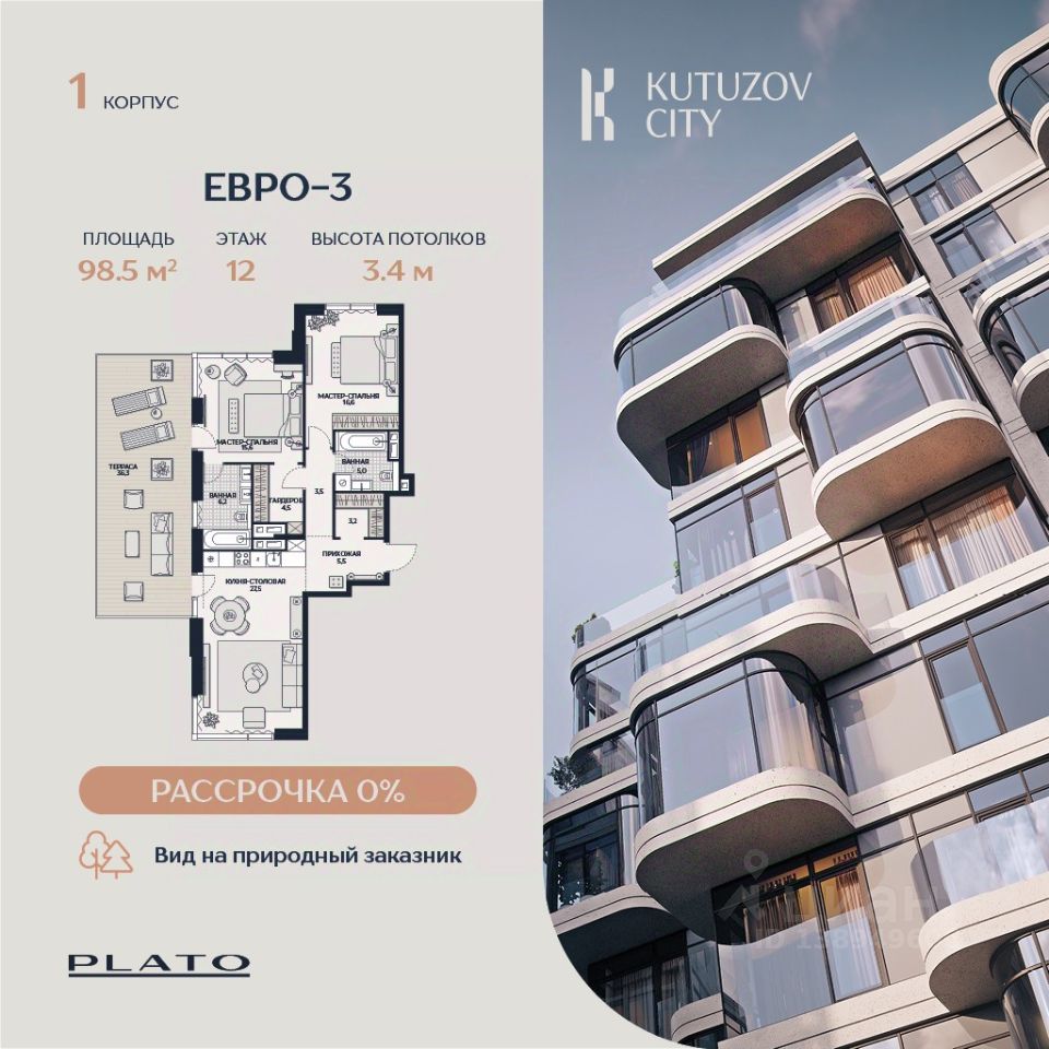 В двух шагах от дома находится крупнейшая природная территория Москвы — природный заказник "Долина реки Сетунь". Камерная застройка и развитая инфраструктура делают "Кутузов Сити" отличным выбором для тех, кто ценит качество жизни и близость к природе. (Лот: 44)