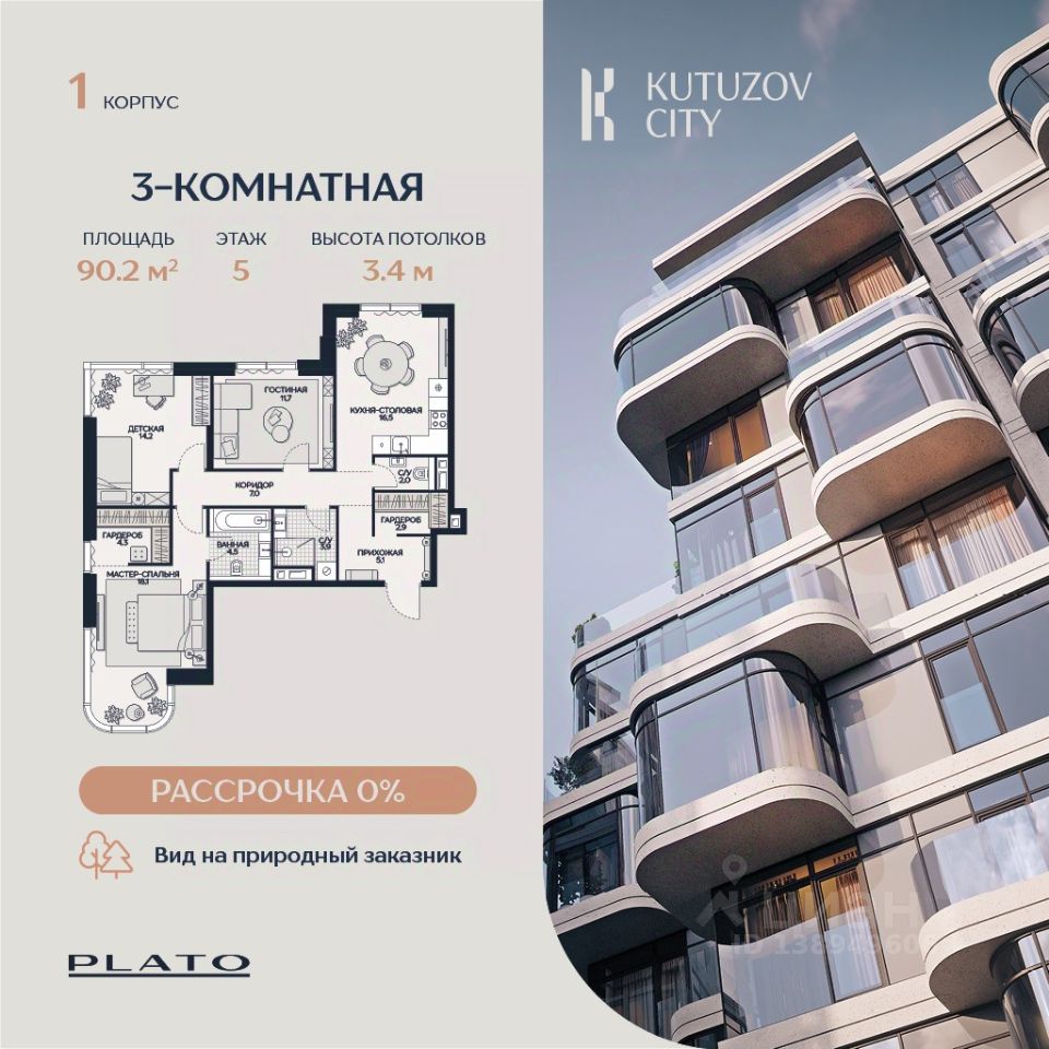 В двух шагах от дома находится крупнейшая природная территория Москвы — природный заказник "Долина реки Сетунь". Камерная застройка и развитая инфраструктура делают "Кутузов Сити" отличным выбором для тех, кто ценит качество жизни и близость к природе. (Лот: 20)