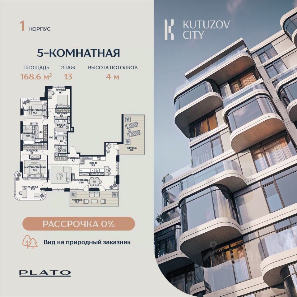 Продается пентхаус площадью 168,6 м² в башне "Гармония" клубного дома "Кутузов Сити".
