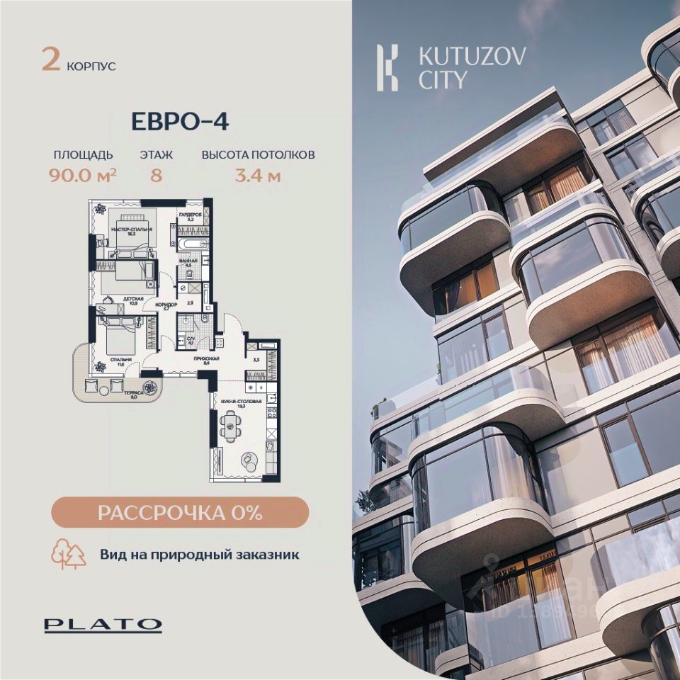 Продаётся просторная четырёхкомнатная квартира площадью 90 м² в башне "Равновесие" клубного дома "Кутузов Сити". В квартире три отдельные комнаты, каждая со своими особенностями. Например, в одной из спален есть отдельный просторный балкон — идеальное место для организации зоны отдыха. Летом его можно использовать в качестве рабочего места. Вторая спальня являет мастер-спальней и предусматривает отдельную ванную и гардеробную. Просторная кухня-столовая с панорамными окнами станет центром семейной жизни и отлично подойдёт для встреч с друзьями и уютных ужинов всей семьёй. Дополнительным преимуществом является отдельная гардеробная, кладовая и второй санузел. Окна наполняют все помещения естественным светом и визуально расширяют пространство. Планировка квартиры позволяет легко адаптировать пространство под разные сценарии жизни: выделить рабочую зону, игровую для детей и уютный уголок для отдыха. О проекте: "Кутузов Сити" — клубный дом на 220 квартир, разработанный совместно с бюро Atrium и Oleg Klodt Architecture & Design. Проект строится в престижном Западном административном округе Москвы, всего в нескольких минутах ходьбы от Кутузовского проспекта. Закрытая территория, приватный двор, подземный паркинг и стильные лобби создают атмосферу комфорта и безопасности. Развитая инфраструктура вокруг делают "Кутузов Сити" отличным выбором для тех, кто ценит комфортную жизни вблизи центра города. (Лот: 73)