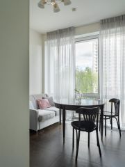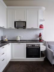 Все реализовано в рамках дизайн проекта, в стиле white wall. Светлые стены идеального цвета подарят вам возможность написать свою историю в данной квартире. Или оставить все как есть от задумки дизайнера собственника.