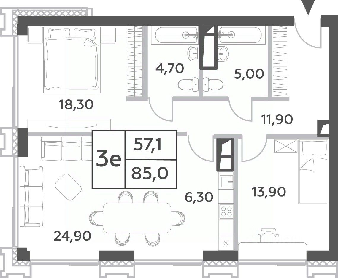 Общая площадь85 м²