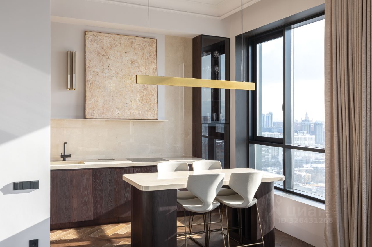 Высококачественная дизайнерская отделка. Премиальные материалы - натуральный мрамор , шпон , широкоформатный керамогранит в санузлах. Освещение полностью Италия . Техника Smeg. Открытие штор автоматизировано.