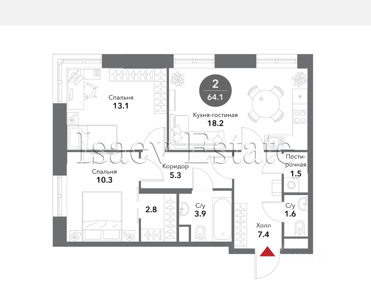 ПЛАНИРОВОЧНОЕ РЕШЕНИЕ: Кухня-гостиная, две изолированные спальни, две ванные комнаты, отдельная постирочная, гардеробная. есть возможность организовать три отдельные спальни.