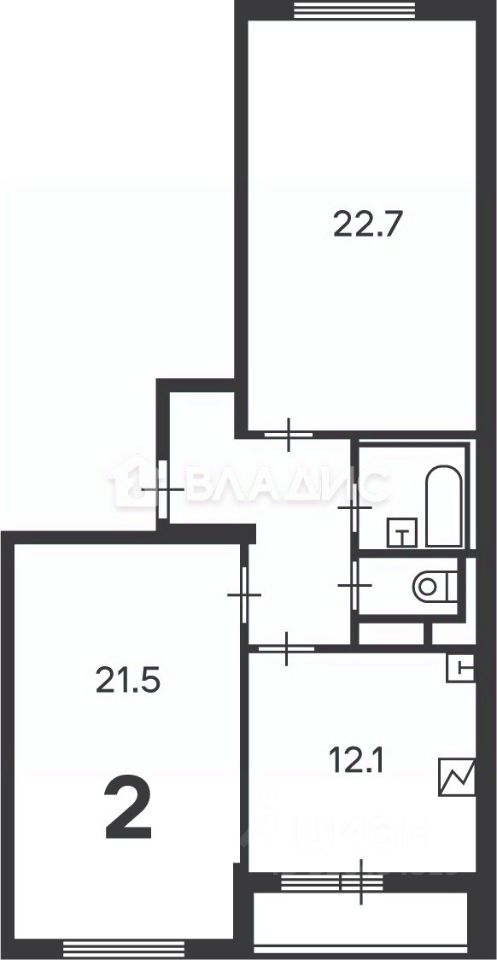 Квартира с евроремонтом, высокими потолками (2,7 м) и просторной лоджией. Жилая площадь составляет 44,2 кв. м, кухня — 12,1 кв. м. Изолированные комнаты и совмещённый санузел обеспечивают комфорт и удобство.