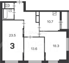 Квартира расположена на 15-м этаже 24-этажного кирпично-монолитного дома, построенного в 2021 году. Общая площадь квартиры составляет 84,5 кв. м, из которых 55,4 кв. м — жилая площадь. Высота потолков — 2,7 м, что создаёт ощущение простора и свободы.