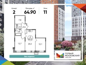 Продается двухкомнатная квартира без отделки в 9 фазе города-парка "Первый Московский".