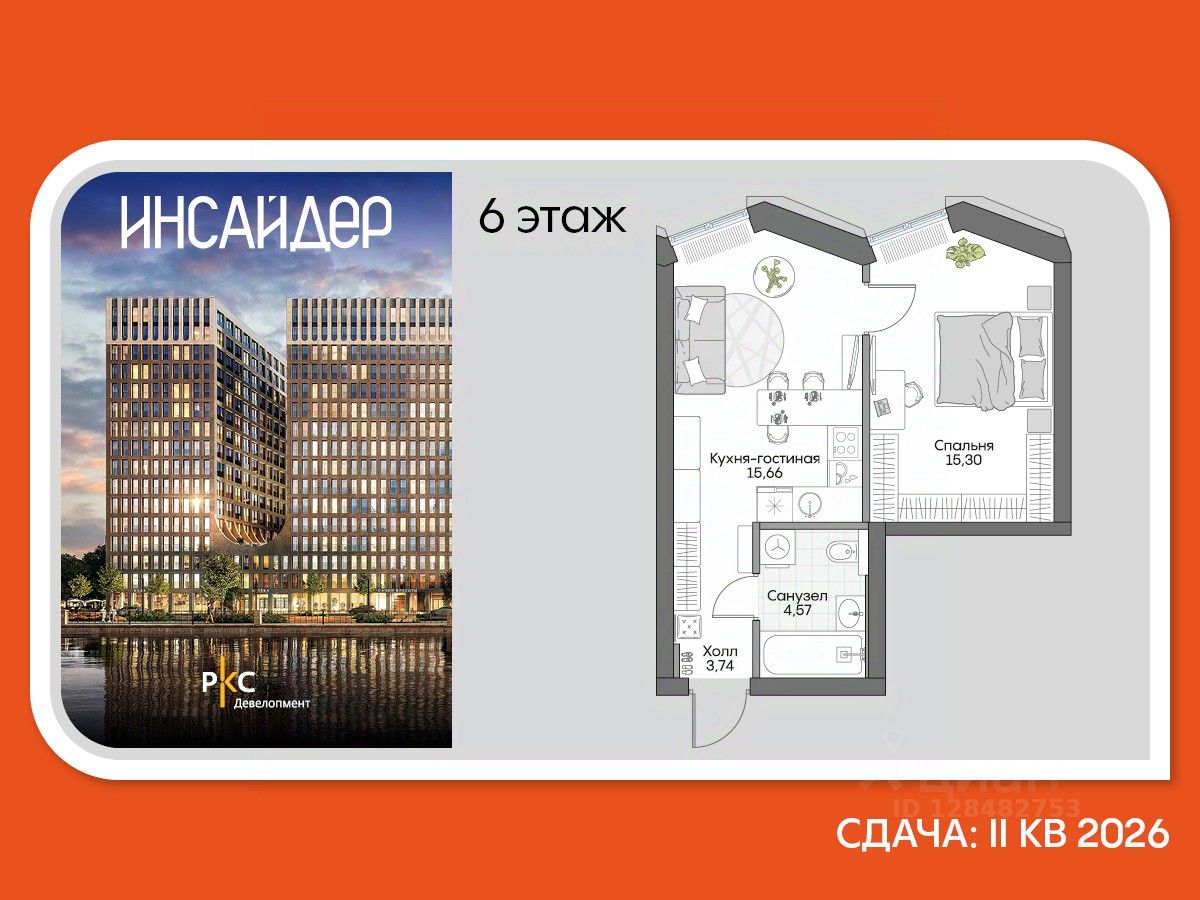 Агентам не звонить. Просторный лот с 1 спальней с отделкой премиум-класса от застройщика в Доме на набережной Инсайдер. Сервисные лоты с системой "умный дом" на первой линии Москвы-реки.