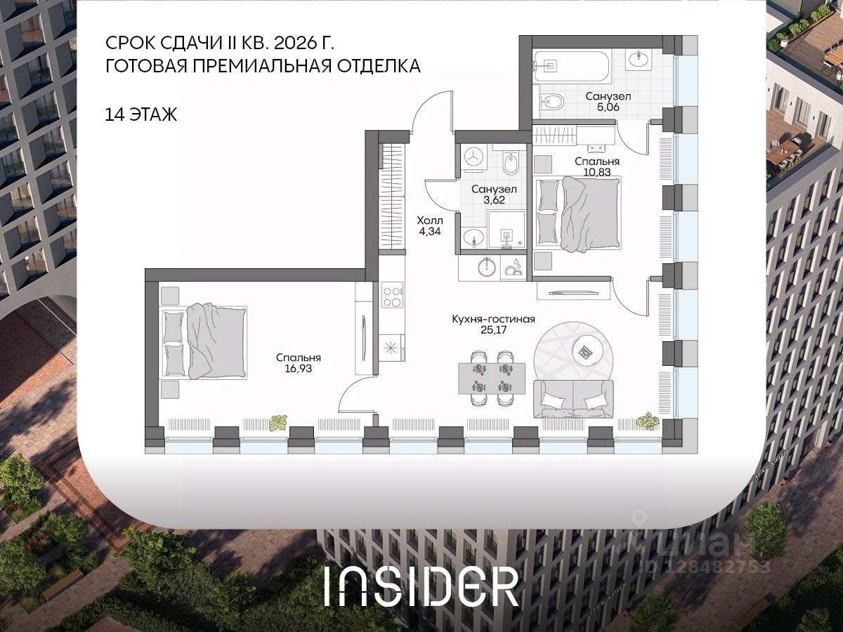 Агентам не звонить. Просторный двухкомнатный лот с отделкой премиум-класса от застройщика в Доме на набережной INSIDER. Сервисные лоты с системой "умный дом" на первой линии Москвы-реки.