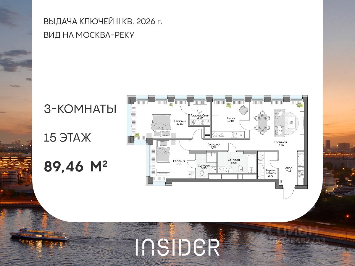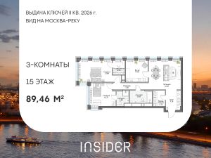 Агентам не звонить. Просторный трехкомнатный лот в Доме на набережной INSIDER. Сервисные лоты с системой "умный дом" на первой линии Москвы-реки.