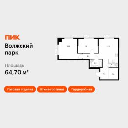 Продаётся 2-комн. квартира площадью 64,7 кв.м на 3 этаже 24 этажного дома (Корпус 6.1, Секция 1) проекта ПИК Волжский парк. Светлый просторный подъезд на уровне земли, функциональная планировка, большие окна, c отделкой.