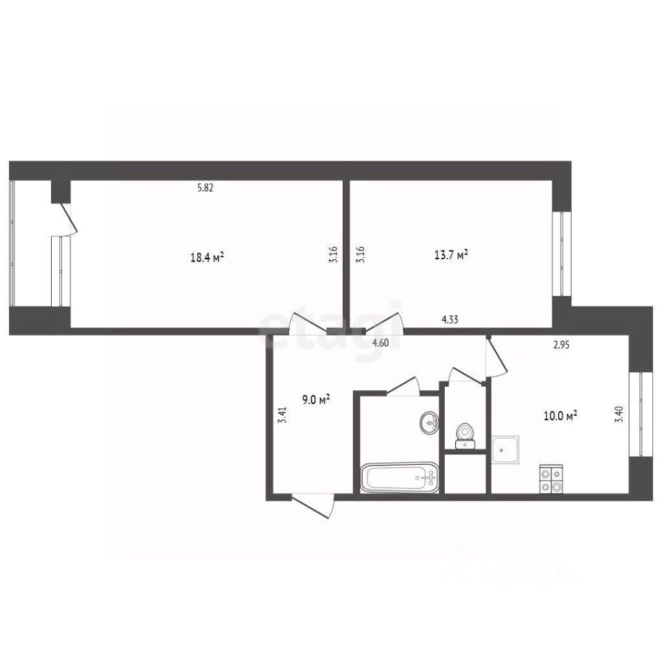 Просторная планировка: Комнаты 13,7 кв.м и 18,4 кв.м., кухня 10 кв.м.