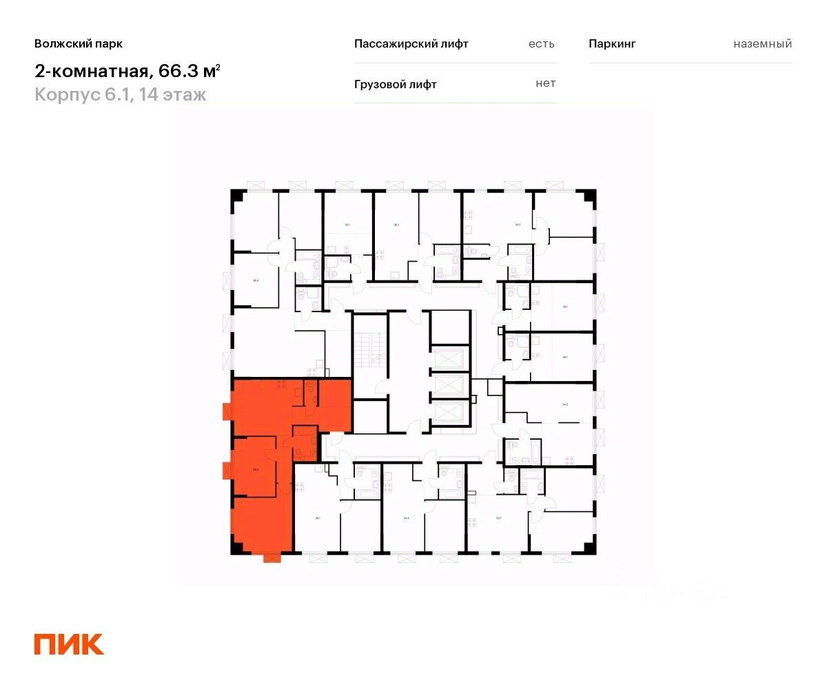 Продаётся 2-комн. квартира площадью 65 кв.м на 14 этаже 24 этажного дома (Корпус 6.1, Секция 1) проекта ПИК Волжский парк. Светлый просторный подъезд на уровне земли, функциональная планировка, большие окна, c отделкой.