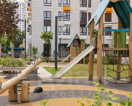 В проекте предусмотрена медленная зона для электросамокатов — с 7 утра до полуночи при въезде на территорию квартала скорость электросамокатов автоматически снижается до 15 км/ч. Артикул 976503 (Застройщик АО "Специализированный застройщик "Волжский парк"")