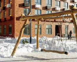 В проекте предусмотрена медленная зона для электросамокатов — с 7 утра до полуночи при въезде на территорию квартала скорость электросамокатов автоматически снижается до 15 км/ч. Артикул 976162 (Застройщик АО "Специализированный застройщик "Волжский парк"")