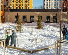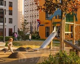 В проекте предусмотрена медленная зона для электросамокатов — с 7 утра до полуночи при въезде на территорию квартала скорость электросамокатов автоматически снижается до 15 км/ч. Артикул 976169 (Застройщик АО "Специализированный застройщик "Волжский парк"")