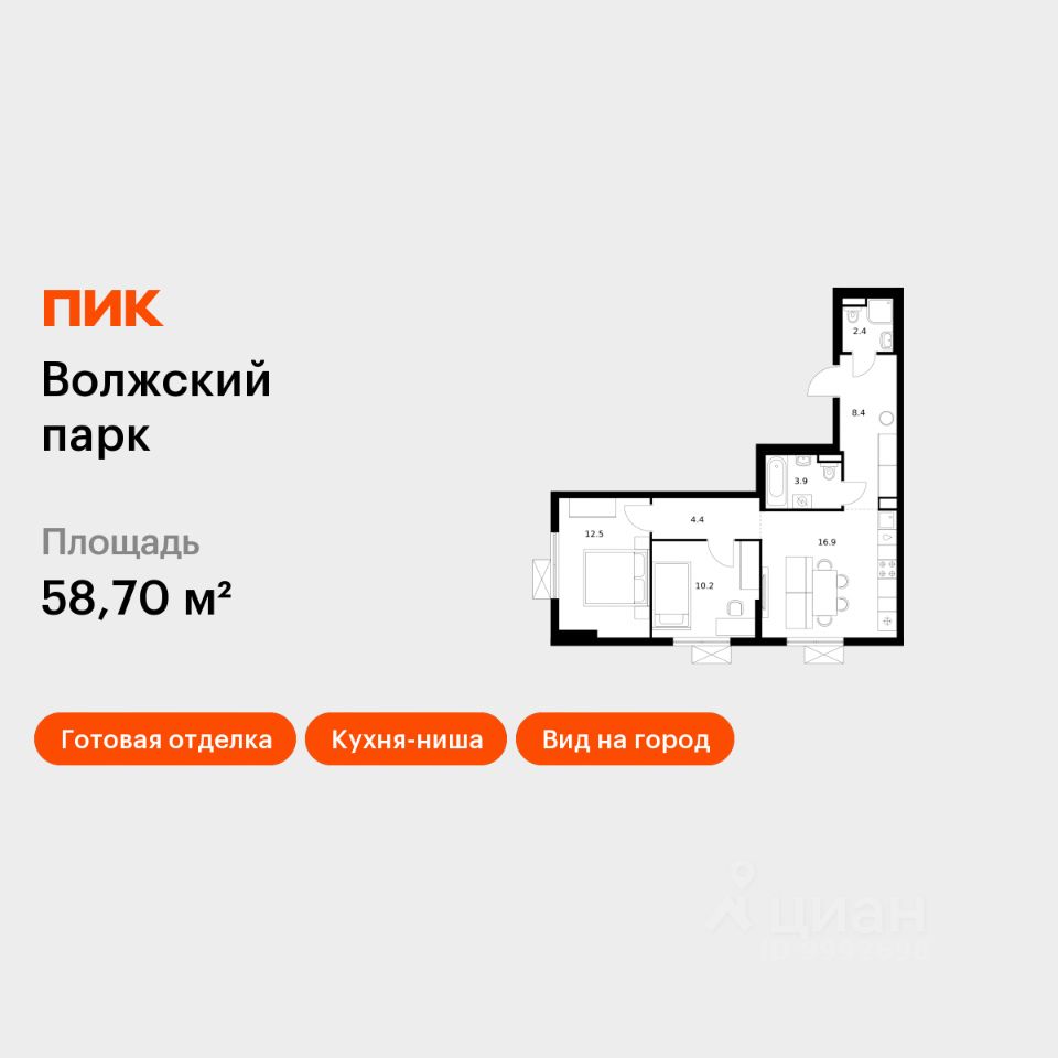 Продаётся 2-комн. квартира площадью 58,7 кв.м на 15 этаже 24 этажного дома (Корпус 6.2, Секция 1) проекта ПИК Волжский парк. Светлый просторный подъезд на уровне земли, функциональная планировка, большие окна, c отделкой.
